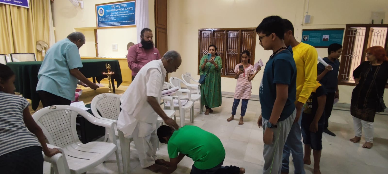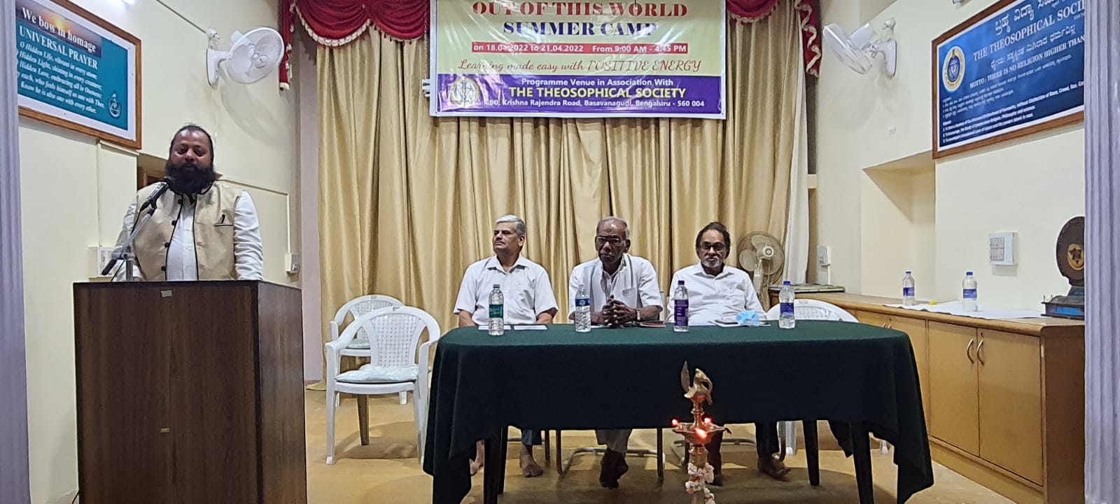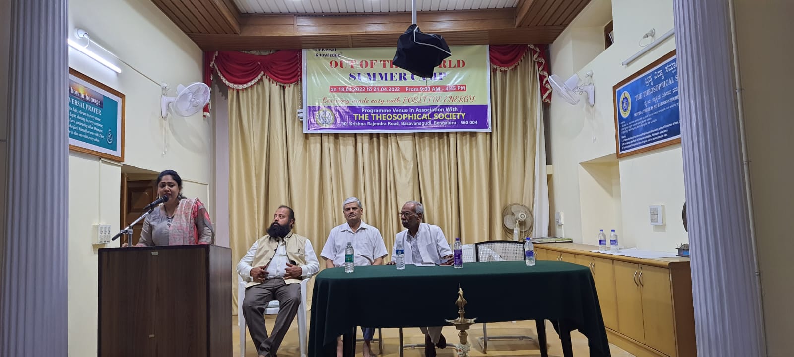 The Theosophical Society #90,Krishna Rajendra Rd, Basavanagudi, Bengaluru, Karnataka -560004 Walkable from Metro KR market or National College.