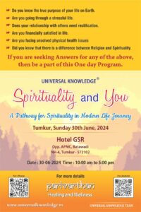 “Spirituality and You” program organized by Universal Knowledge Trust in Tumkur on the 30th of June 2024, Sunday.