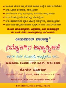 “Spirituality and You” program organized by Universal Knowledge Trust in Tumkur on the 30th of June 2024, Sunday.
